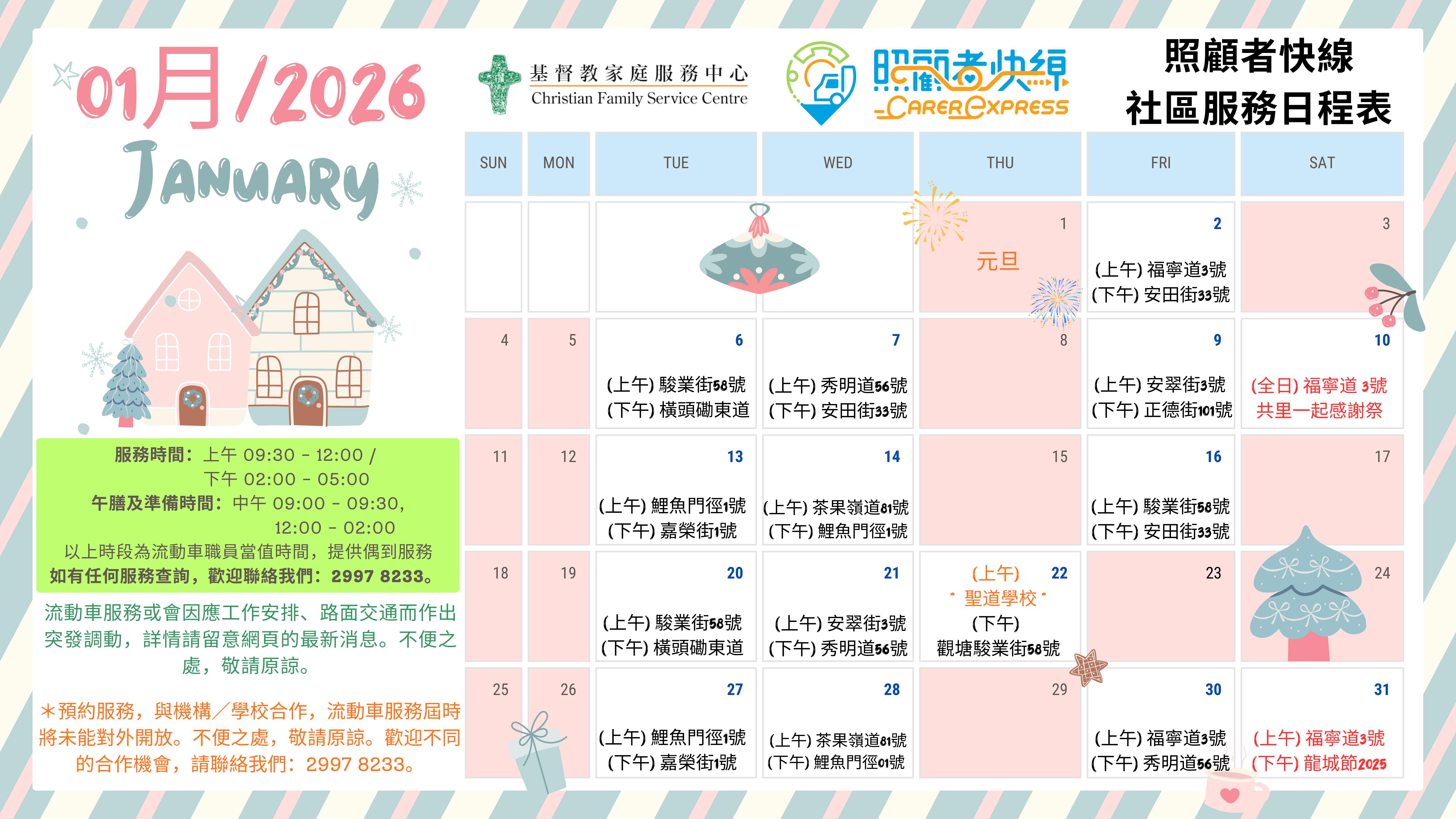 - 殘疾人士/長者服務查詢可於辦公時間致電快線電話 2997 8233 查詢服務;