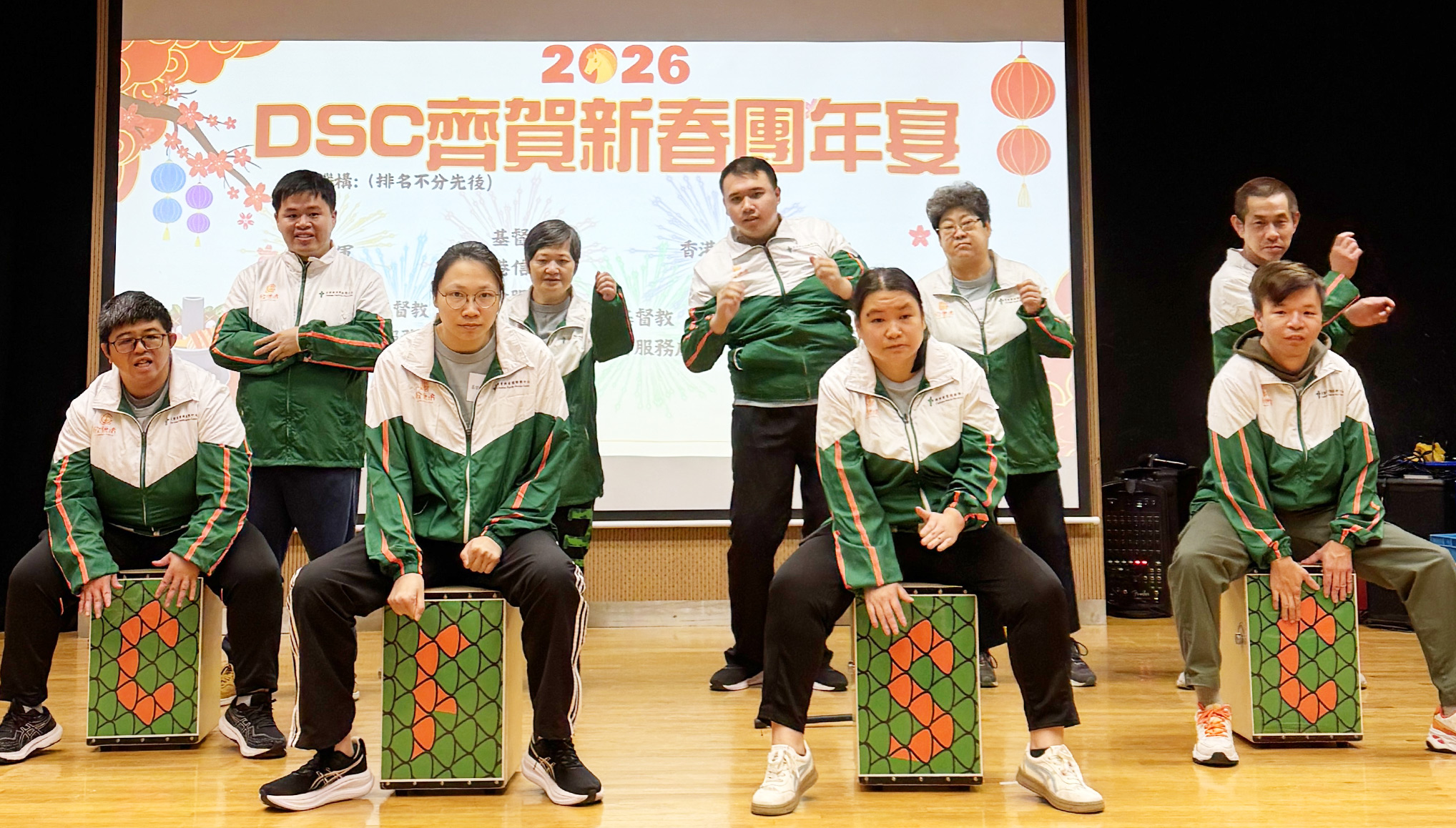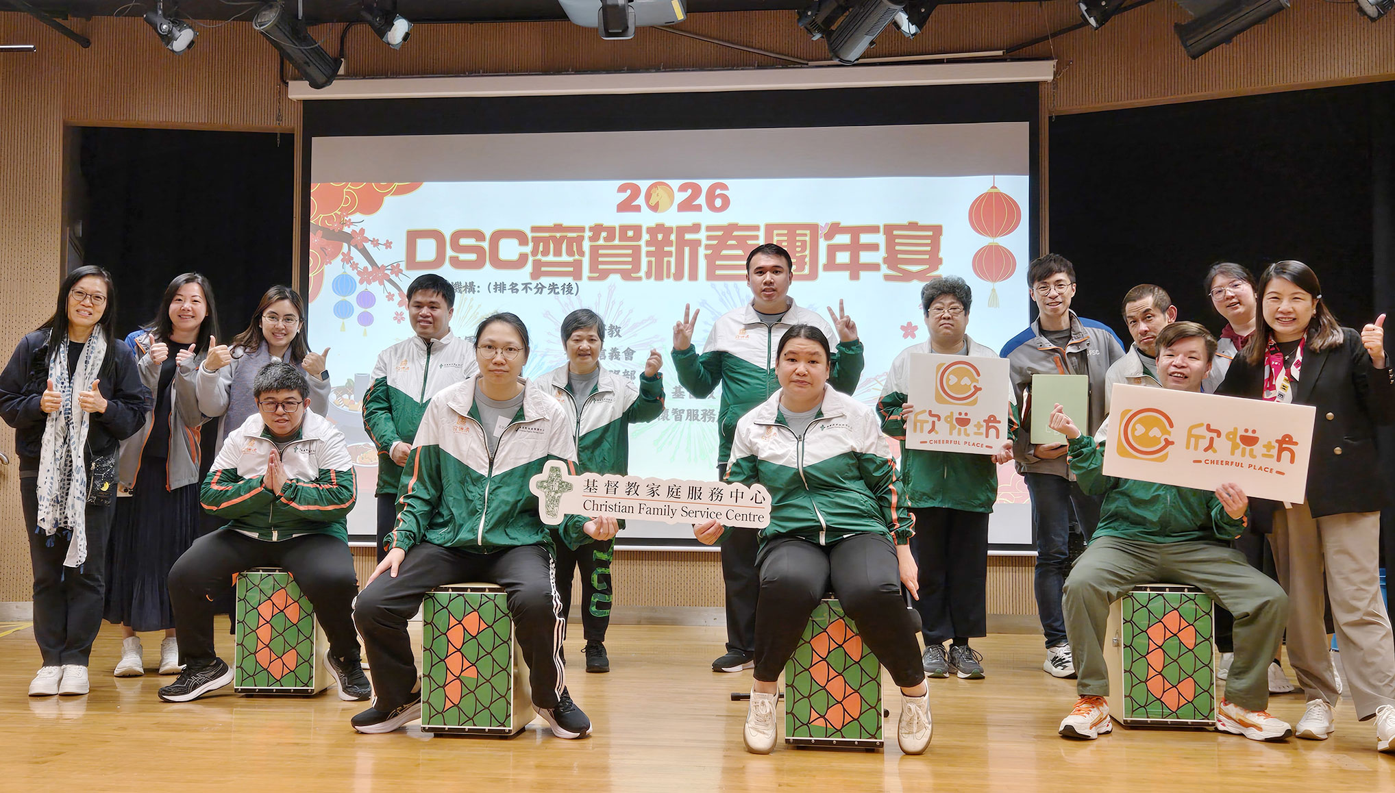 為迎接農曆新年,多間殘疾人士地區支援中心攜手合辦的「DSC 齊賀新春團年宴」已於2026年3月10日圓滿舉行。是次活動匯聚不同中心的服務使用者,透過團年聚餐及交流表演,一同感受新春佳節的喜樂與團聚的溫馨氣氛。