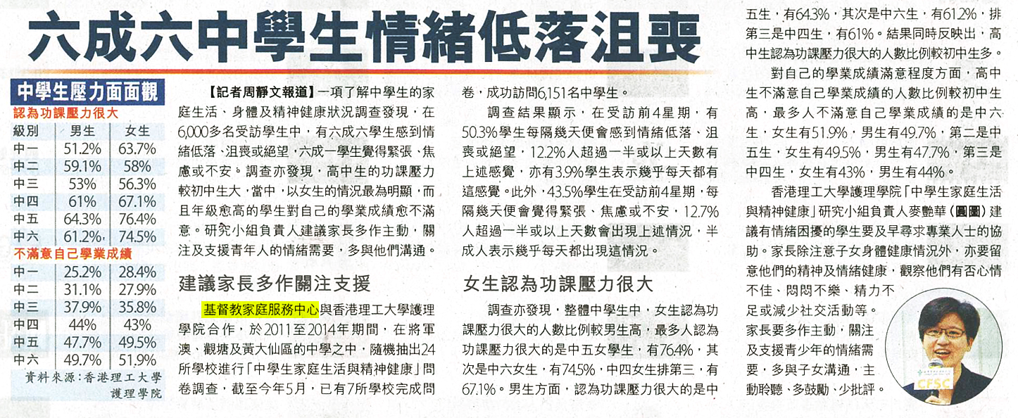 | 媒體報導: 六成六中學生情緒低落沮喪 | |