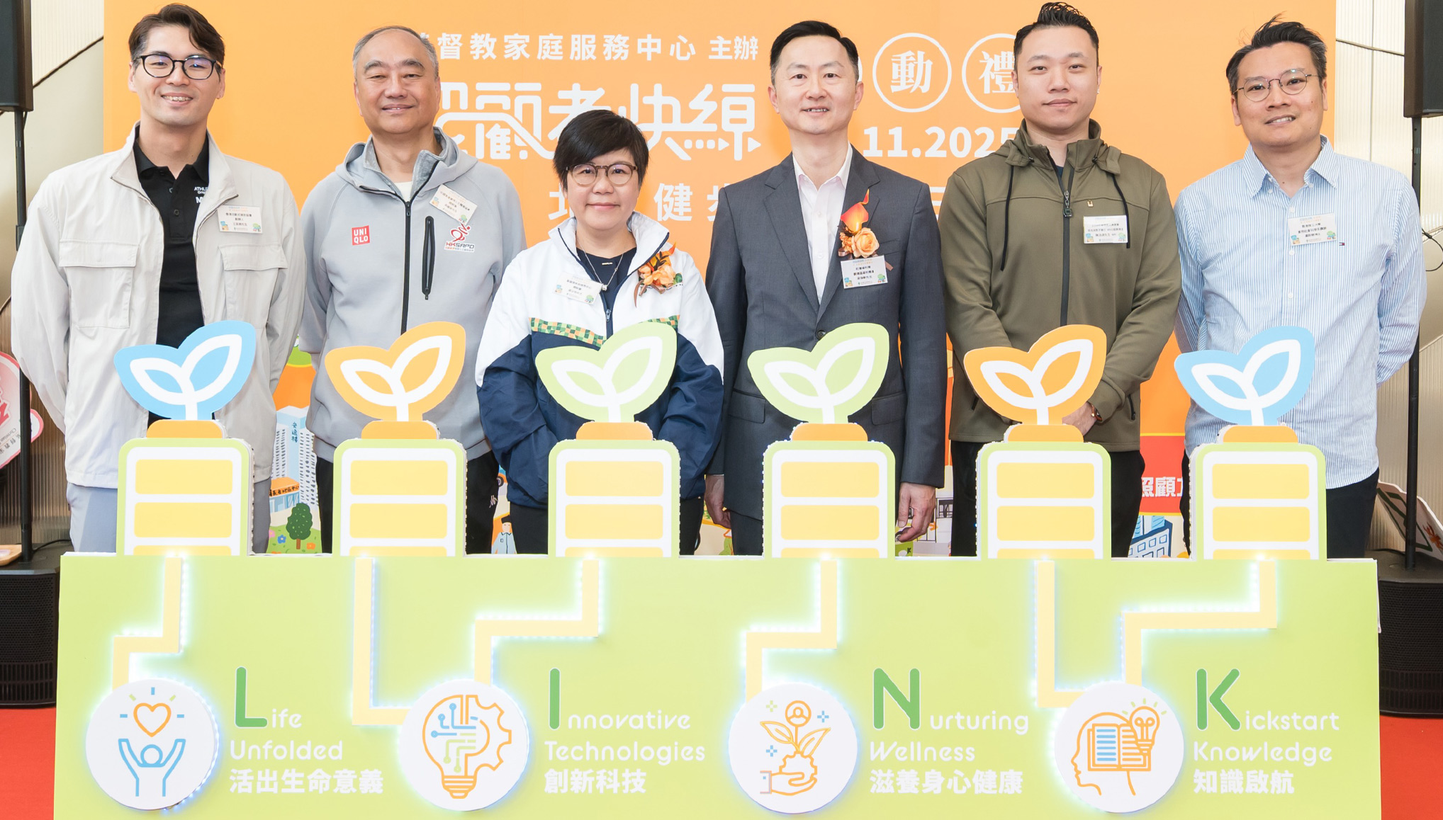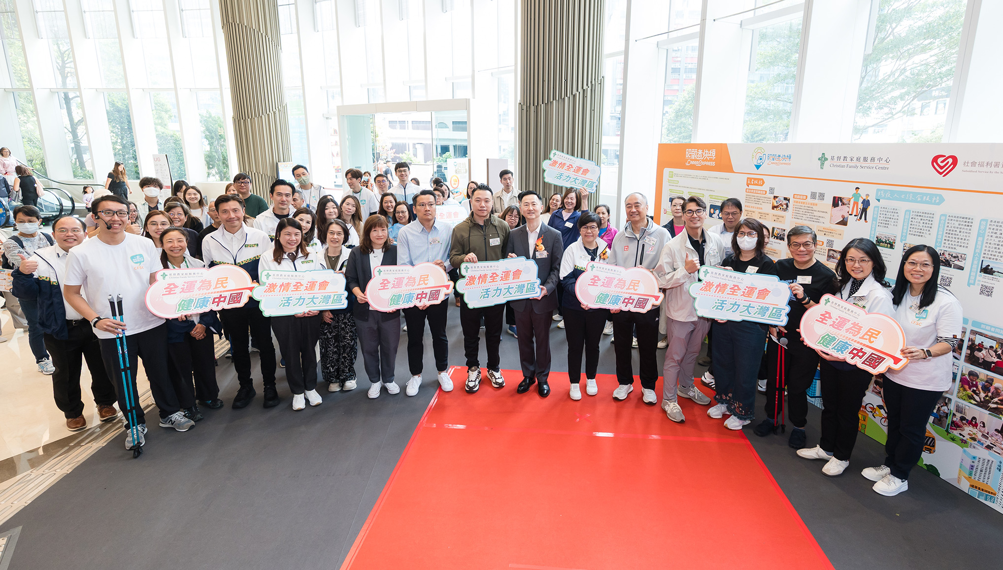 而今次的啟動禮吸引約550名公眾人士參與,一起體驗北歐健步行、AI 智能家居、參與真人圖書館與照顧者交流,攜手打造照顧者友善社區。我們感謝一眾主禮嘉賓,包括社會福利署觀塘區福利專員梁保華先生、中國香港傷殘人士體育協會總幹事吳曙明先生、香港北歐式健走協會創辦人王奕朗先生、2024巴黎殘疾人奧運會羽毛球男子單打WH2銀牌得主陳浩源先生MH,以及香港理工大學應用社會科學系講師盧啟聰博士,在本會總幹事梁少玲女士陪同下出席是次活動,並一起進行啟動儀式,喻意為家庭注入照顧新力量,並與照顧者代表一起簽署「一起.愛自己.齊運動」照顧者同心健步行約章。