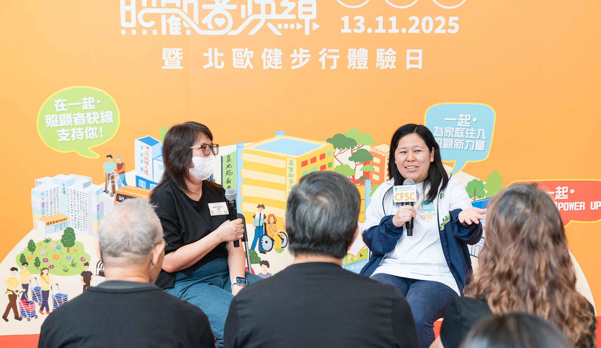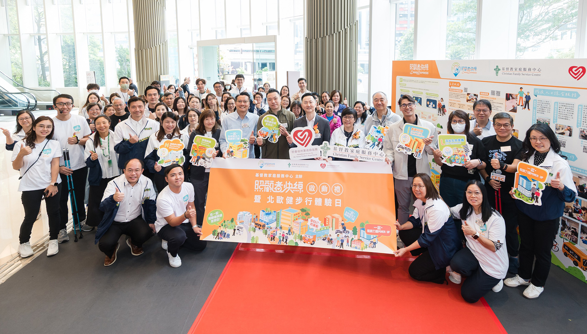 CFSC於早前舉辦 「照顧者快線啟動禮 暨 北歐健步行體驗日」,藉此推廣本會的最新推出的「照顧者快線」。這項全新的支援服務由本會的長者地區中心及殘疾人士地區支援中心共同策劃,以流動車及電話服務支援服務深入社區,為照顧者提供即時支援、健康資訊及智能復康用品體驗,為家庭注入照顧新力量。