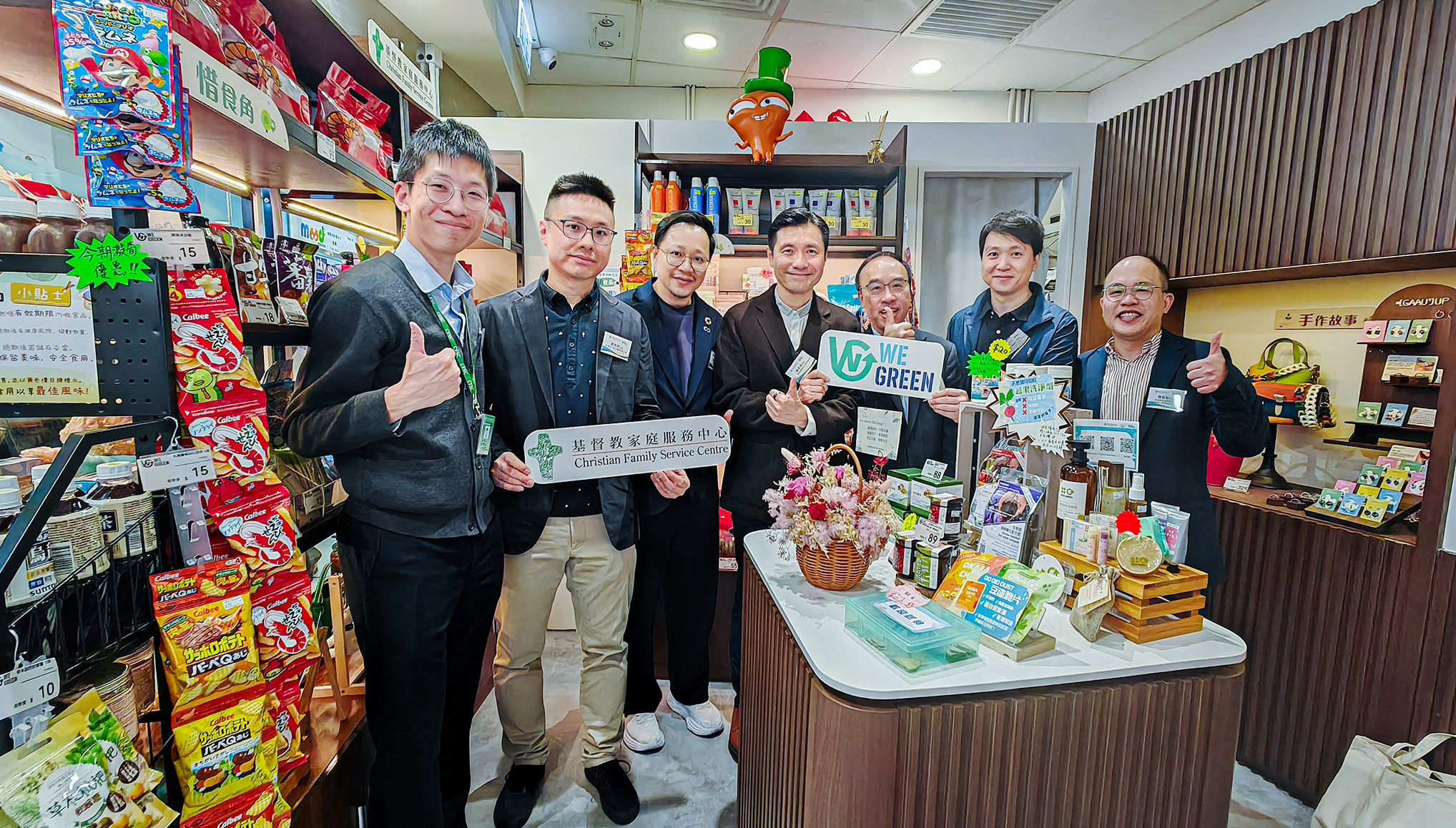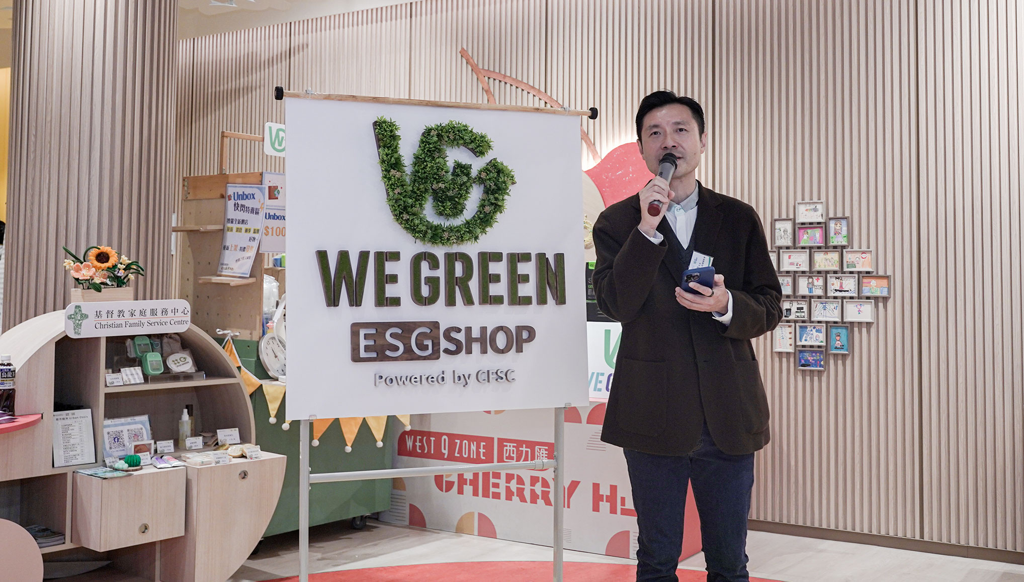 基督教家庭服務中心助理總幹事賴君豪先生在致辭中表示:「We Green – ESG Shop」是全新的環保減廢項目,結合零售和週末市集,以實際行動落實 ESG(環境、社會、管治)三大價值。平台將優先聘用殘疾人士與基層婦女,積極創造就業及培訓機會。他表示,透過透明的合作模式,平台旨在促進社會企業與初創公司的協作,共同深耕綠色經濟。我們期待與更多企業及社區夥伴並肩,擴大綠色生活圈,引領市民落實可持續發展的生活方式。」
