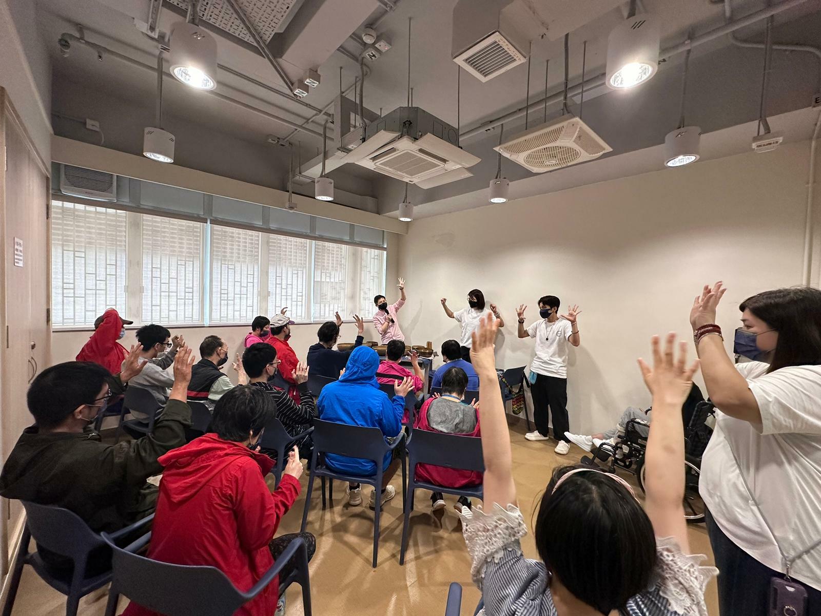 透過《集體聲音療癒體驗》幫助舍友放鬆身心、釋放情緒,同時對應身體不同的堵塞,不論是情緒或身體痛處,都達到舒通的效果。