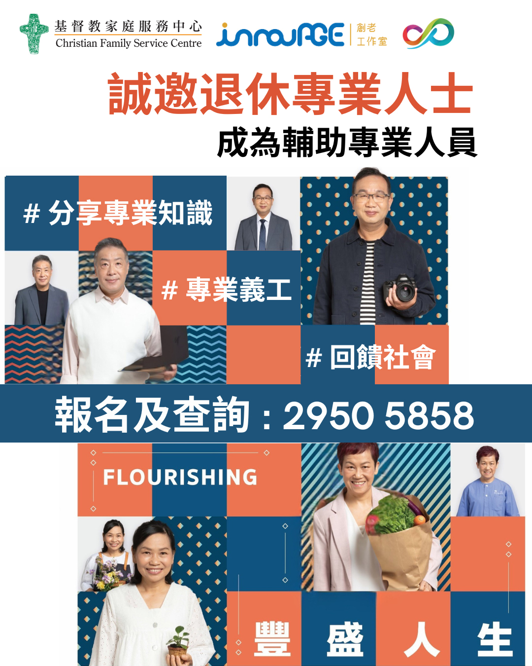 社會服務的人力資源庫 專業知識回應社會需要 現正招募第十五期輔助專業人員 【截止日期為2026年6月6日(六)】